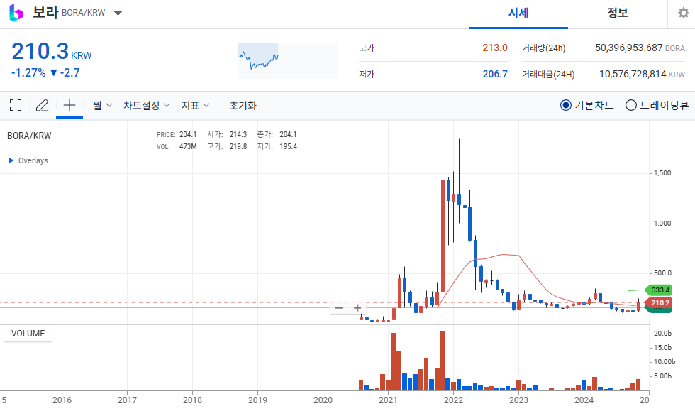 보라코인(BORA)는 블록체인 기반의 디지털 콘텐츠 플랫폼인 BORA(BLOCKCHAIN ORACLE FOR RECORDED ASSETS)의 네이티브 토큰입니다. BORA는 게임, 엔터테인먼트, 소셜 콘텐츠 같은 다양한 디지털 콘텐츠를 탈중앙화된 방식으로 유통하고 보상 시스템을 구축하는 데 초점을 맞춘 프로젝트입니다.