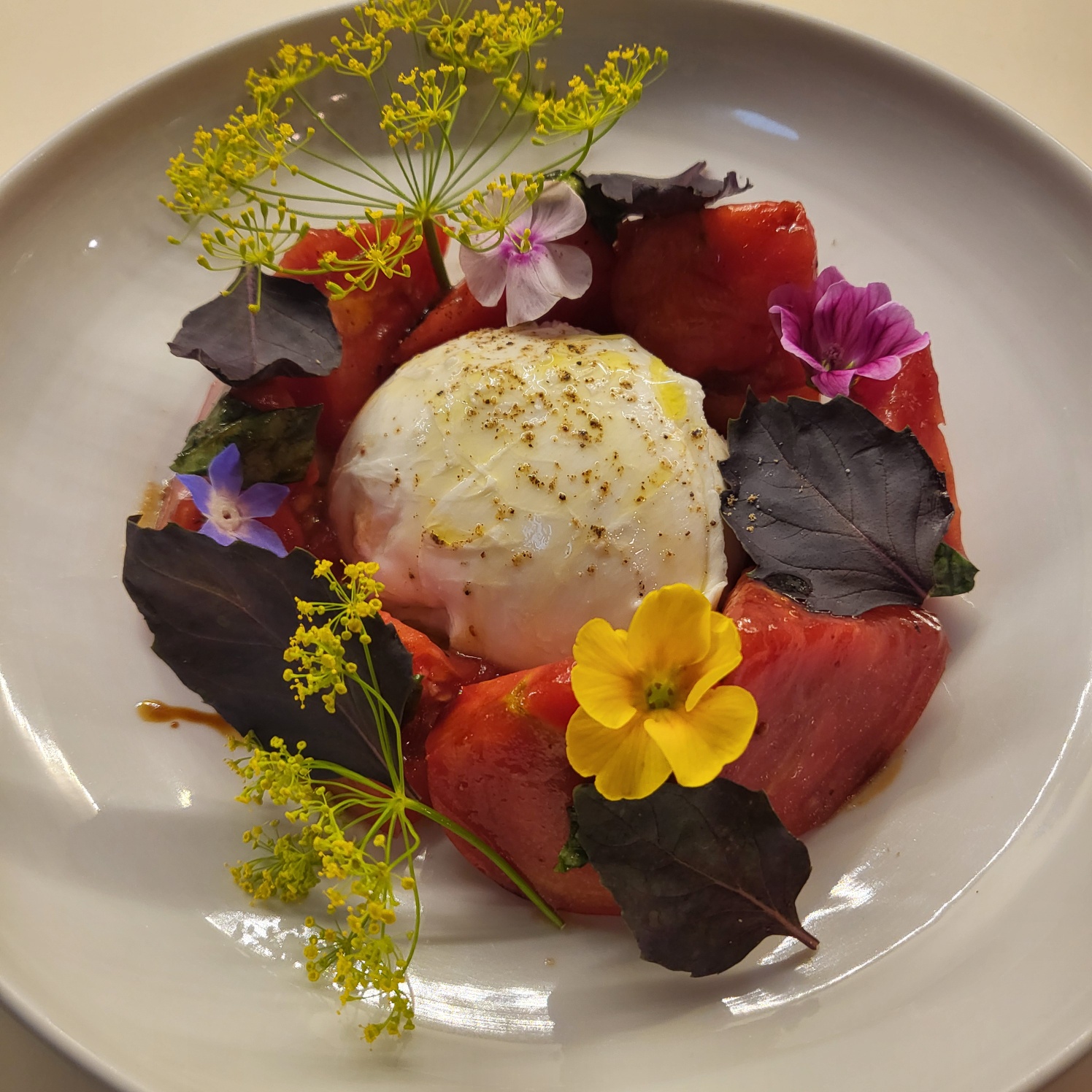 펜넬꽃, 식용꽃, 퍼플바질 , 그리고 에어룸토마토 Heirloom Tomato