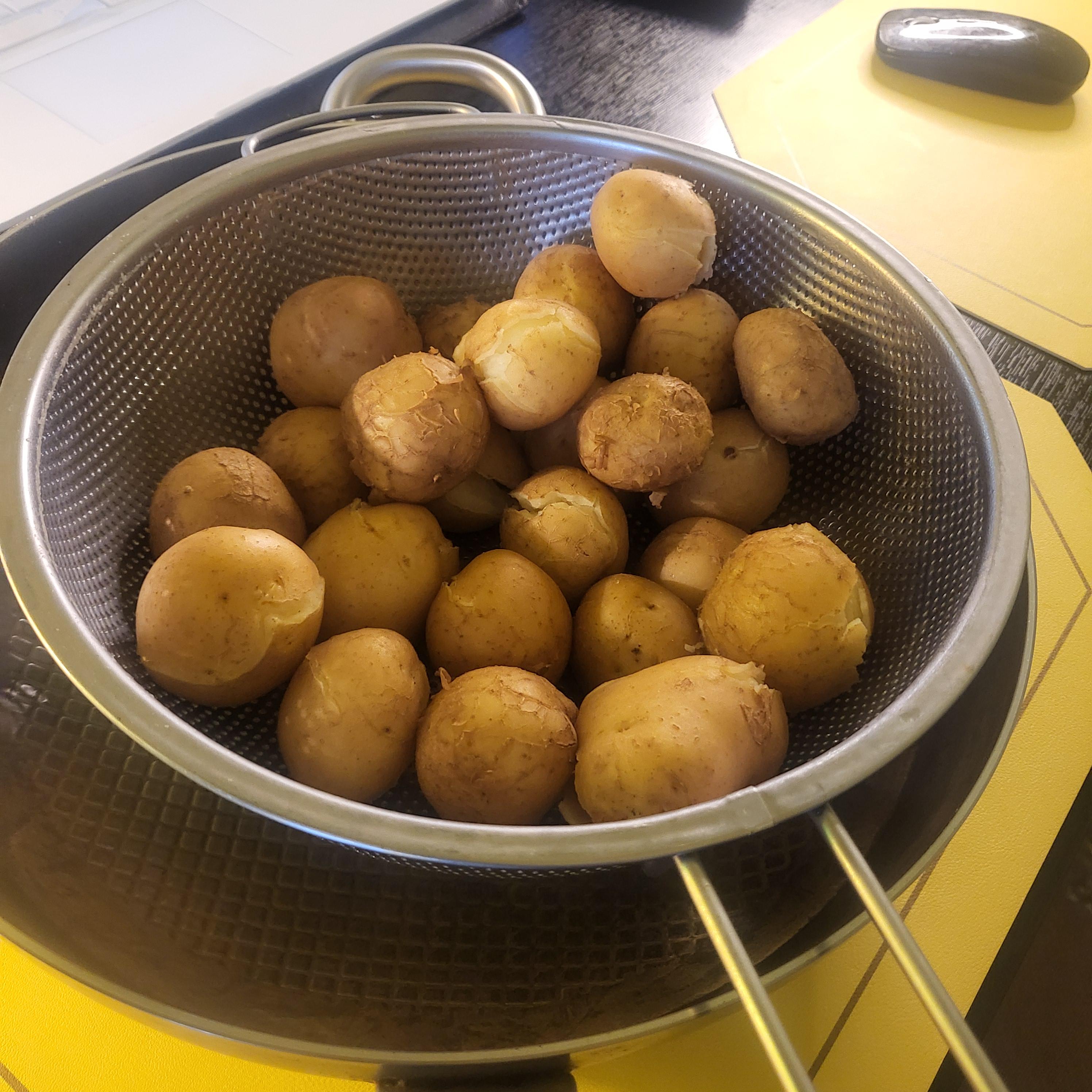 감자는 껍질째 찐 후, 뜨거울 때 껍질을 벗기고 곱게 으깨주세요.