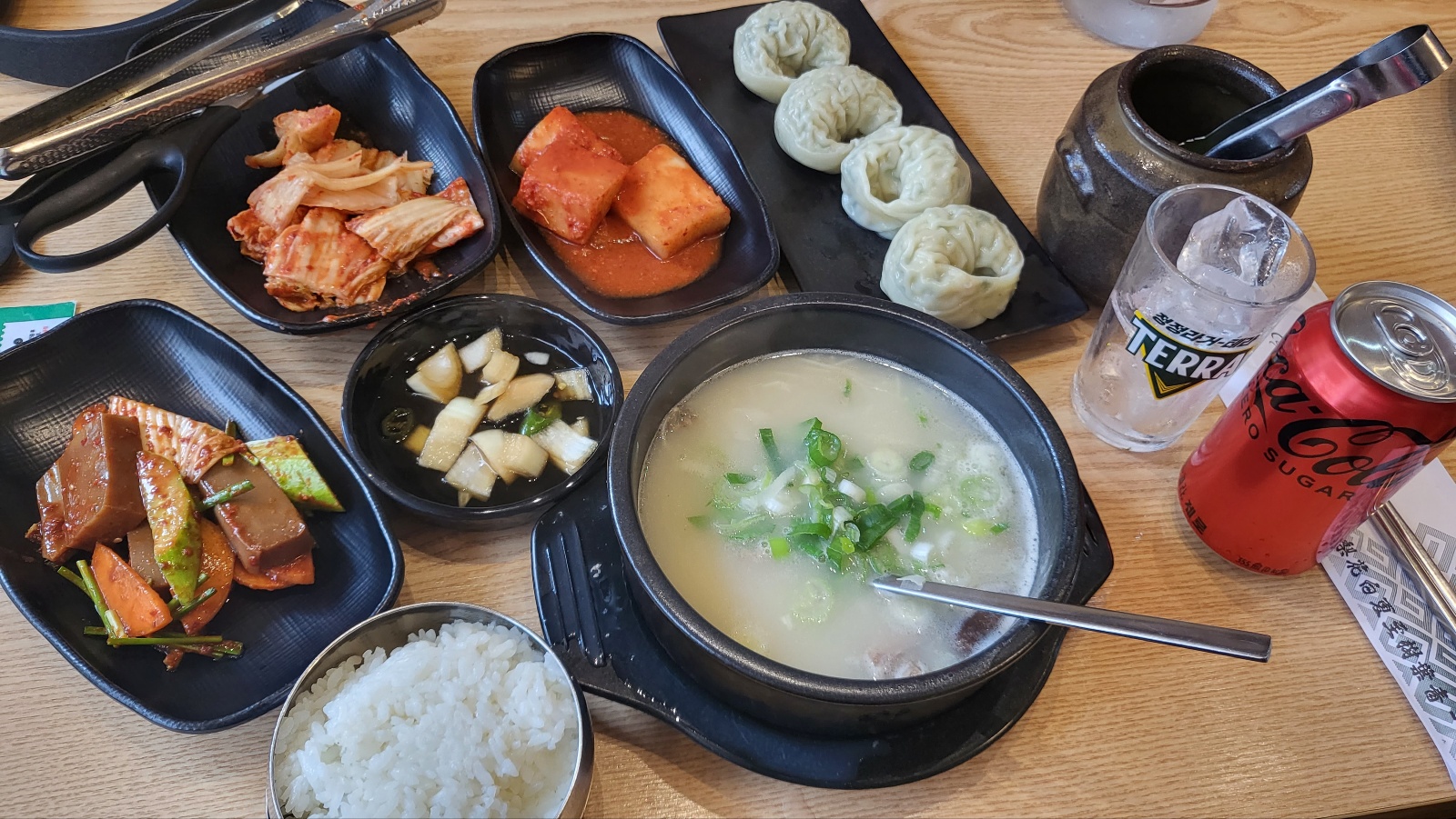 기본 반찬들과 수육국밥 만두를 먹었는데요