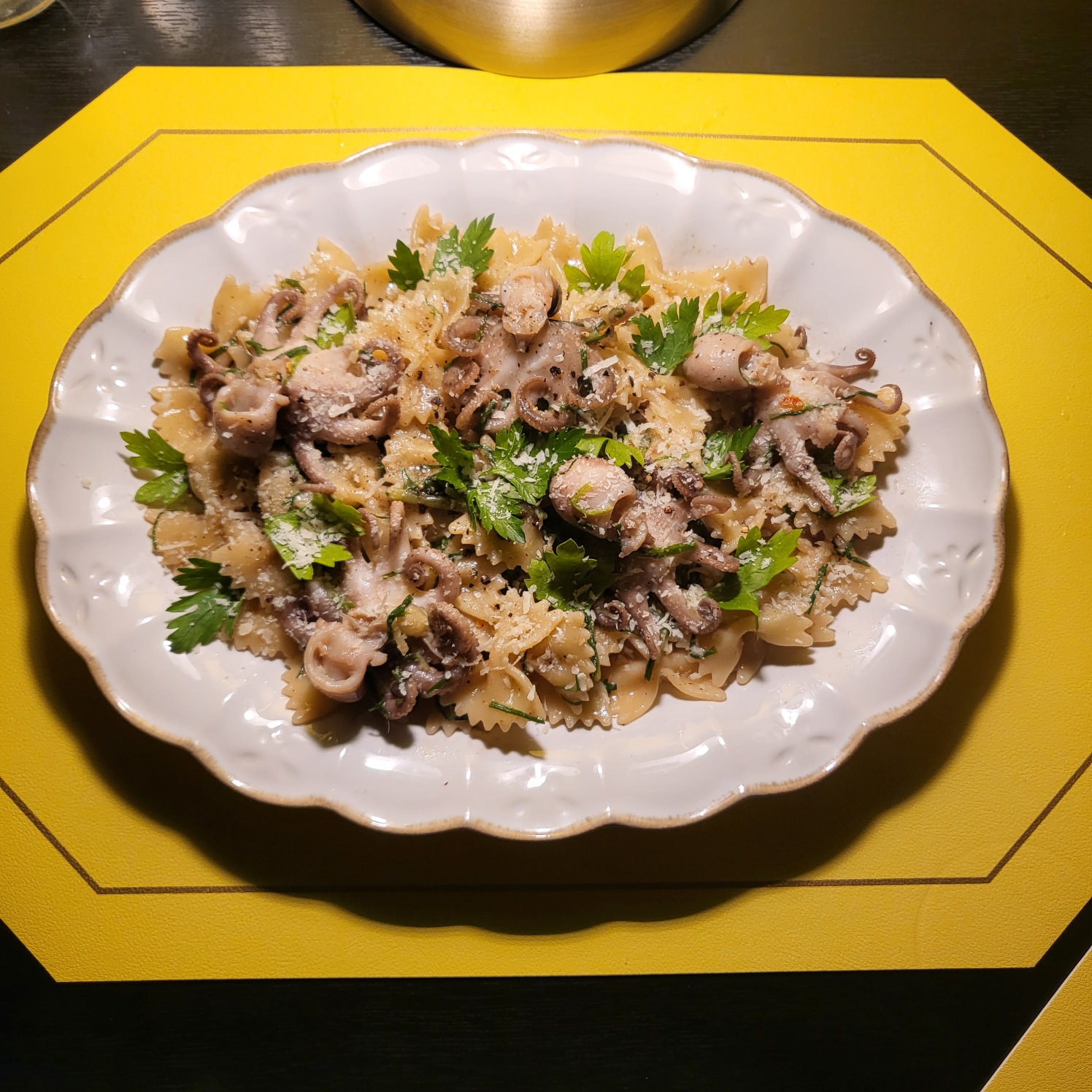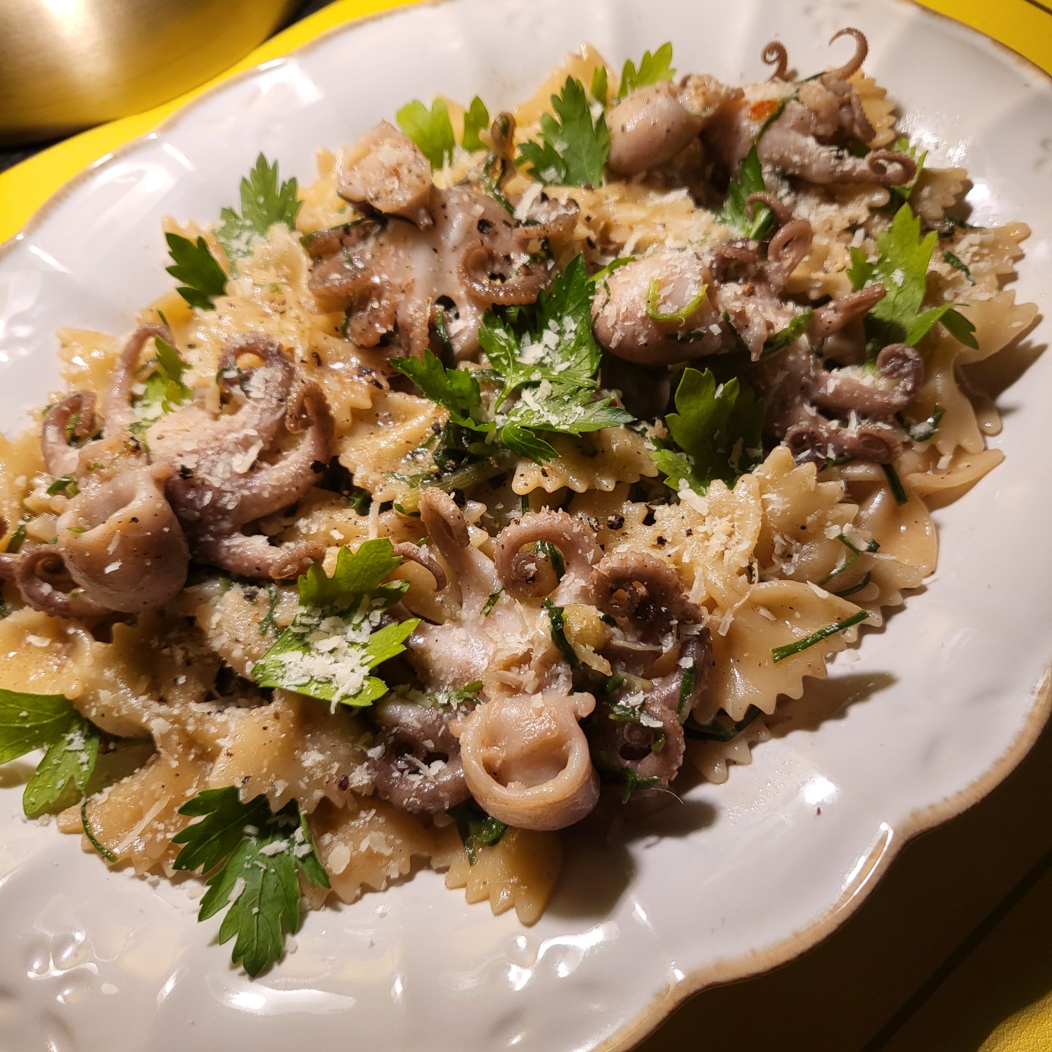 Seasonal Wild chive, Webfoot octopus, and Anchovy Pasta