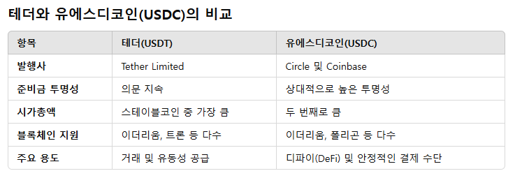 2024년 기준, 테더는 시가총액 기준으로 스테이블코인 중 가장 큰 점유율을 보유.