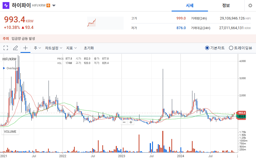 최근 하이파이 코인은 급등과 급락을 경험하며 높은 변동성을 보였습니다. 일부 투자자들은 이 변동성을 세력의 개입으로 보고 있으며, 이는 상대적으로 낮은 시가총액 때문일 가능성이 있습니다