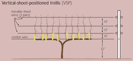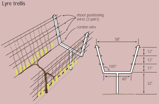현재 캘리포니아에서 사용되는 주요 와인용 포도 격자 시스템은 다음과 같습니다.