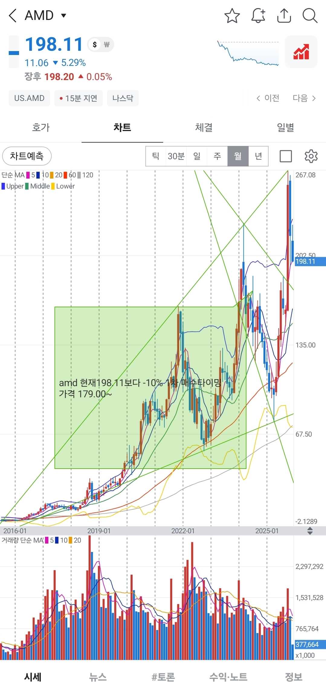 현재보다 -10%정도 179달러쯤 분할 매수 예정