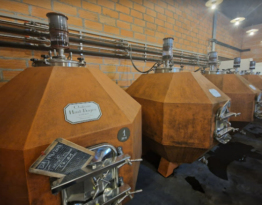 새 배럴 40%, 와인 배럴 40%, 난형 콘크리트 통 및 암포라 20%를 포함하여 16개월