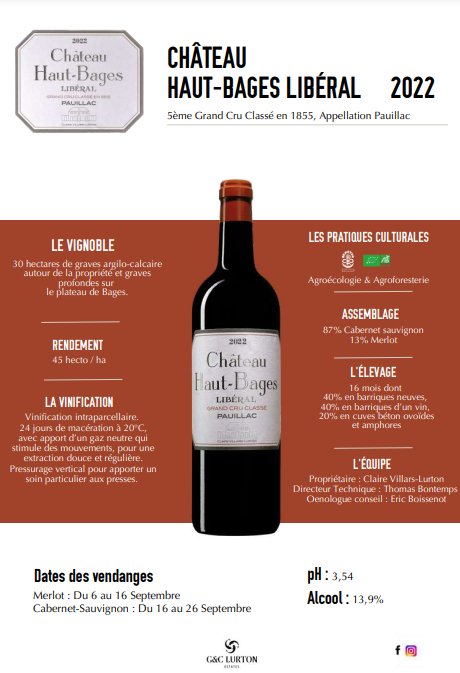 2022년 빈티지는 과일의 훌륭한 향과 매우 아름다운 미네랄리티가 특징이며, 샤토가 위치한 이상적인 떼루아를 완벽하게 반영합니다. 우아하고 정밀한 탄닌.