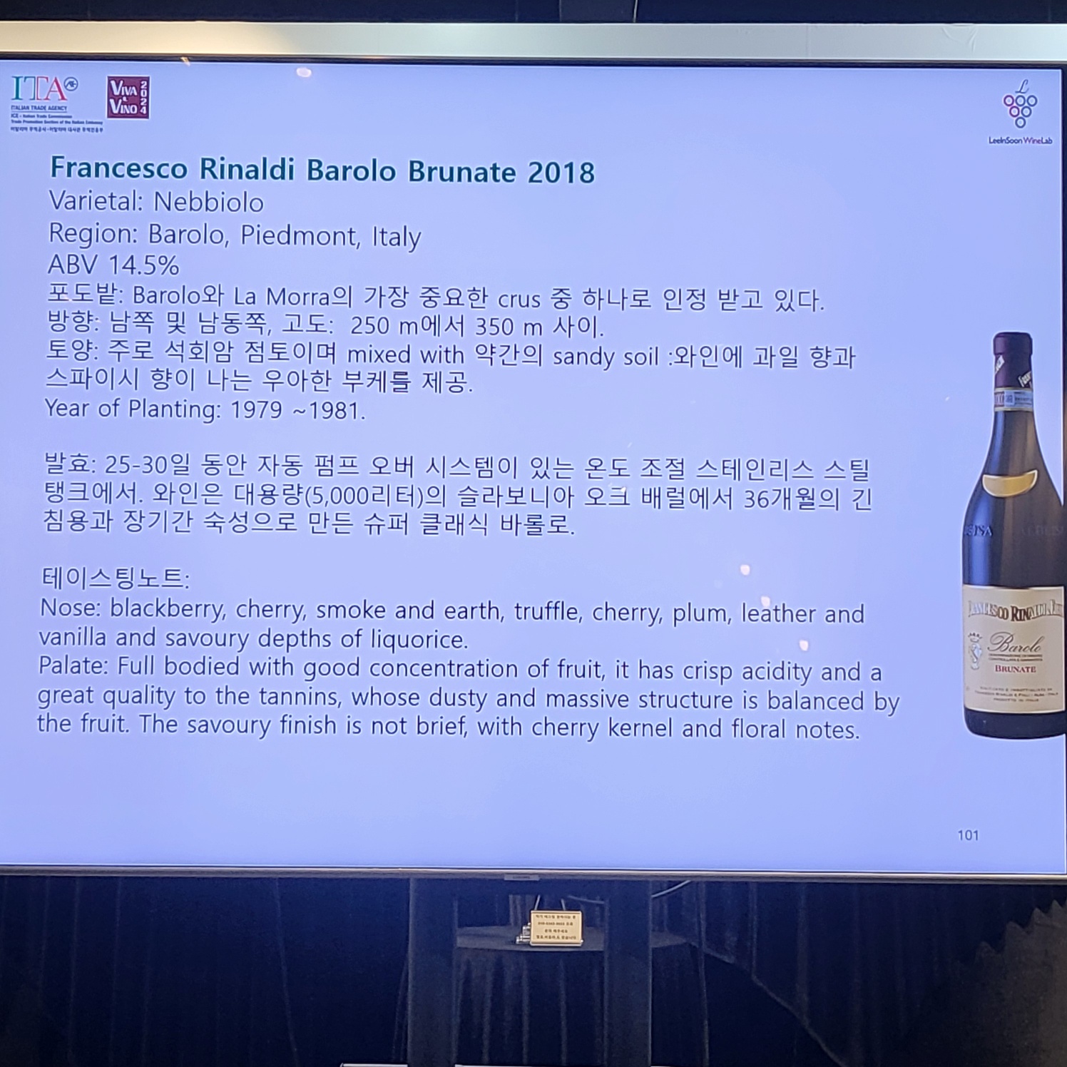 와인은 대용량(5,000리터) 슬라보니아 오크 통에서 최소 3년 동안 정제됩니다.