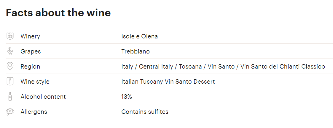 이 와인에는 특별한 제조 방법이 있습니다. 갓 수확한 말바시아(Malvasia)와 트레비아노(Trebbiano) 포도를 밀짚 매트 위에 놓아 건포도를 만들거나 걸거나 실내 선반에 걸어 건조시킵니다. 스타일은 드라이한 것부터 달콤한 것까지 다양합니다. 이 스타일은 달콤하고 비스코티와 완벽하게 어울립니다.