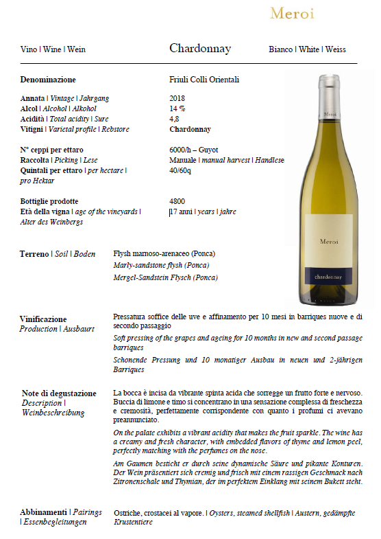 파올로 메로이(Paolo Meroi)는 증조할아버지가 시작한 사업을 계속 이어가고 있으며, 1980년대 말에 처음으로 가족 와인을 병입했습니다. 이 와인은 그때까지 대량으로 판매되었으며 현재는 언덕에 약 20헥타르의 포도밭을 경작하고 있습니다. Buttrio.
