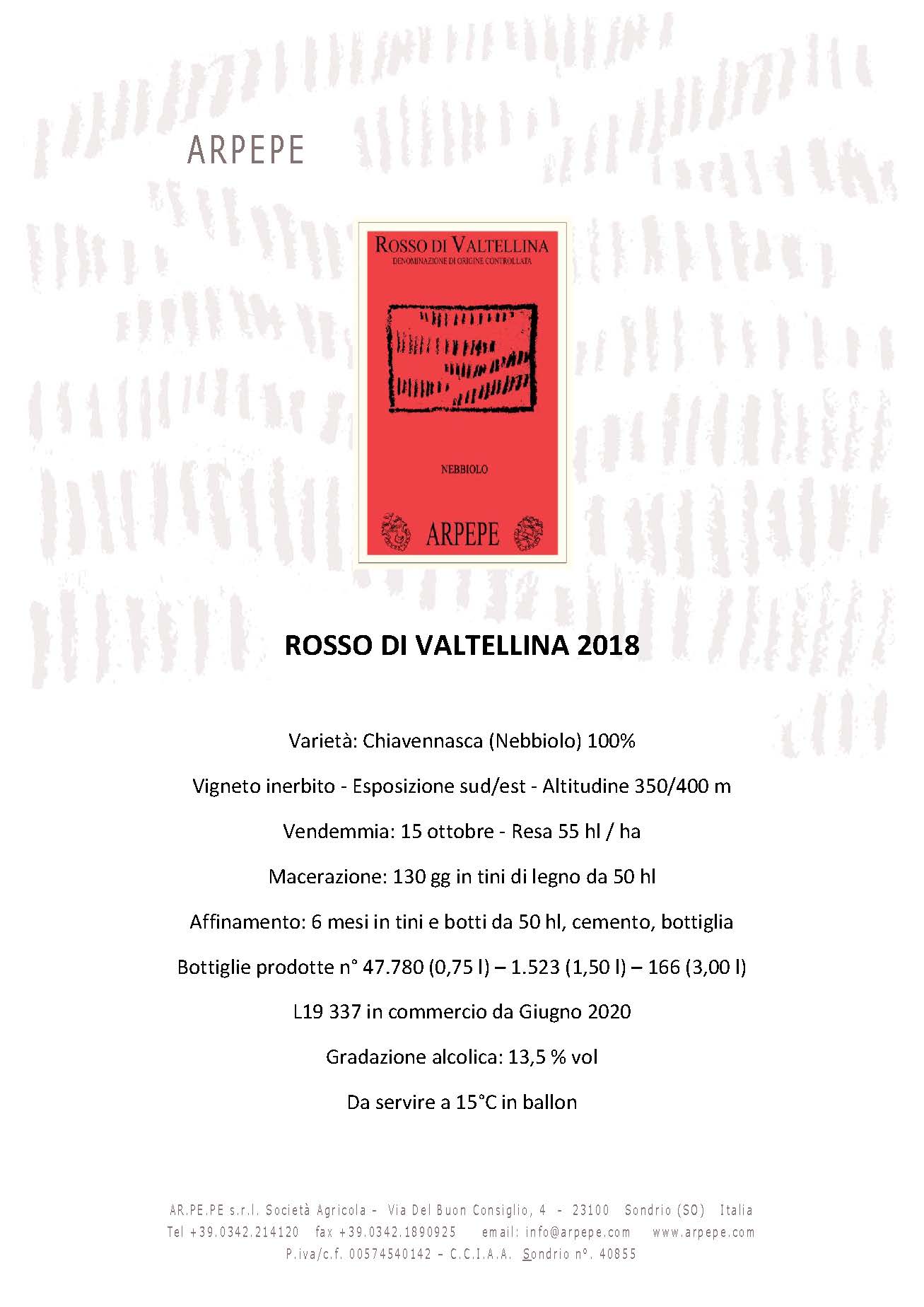 ARPEPE 's Rosso di Valtellina DOC was born in 2003 in a torrid summer, very harsh for our winemakers and our vineyards. It was not right to debase these efforts by selling off the grapes, which are unsuitable for long-aging winemaking. The choice was natural: what may have little value in the distant future can be ennobled at a young age. Rosso di Valtellina thus developed a free and carefree character, despite its older brothers, more serious and refined, fearing its durability over time.