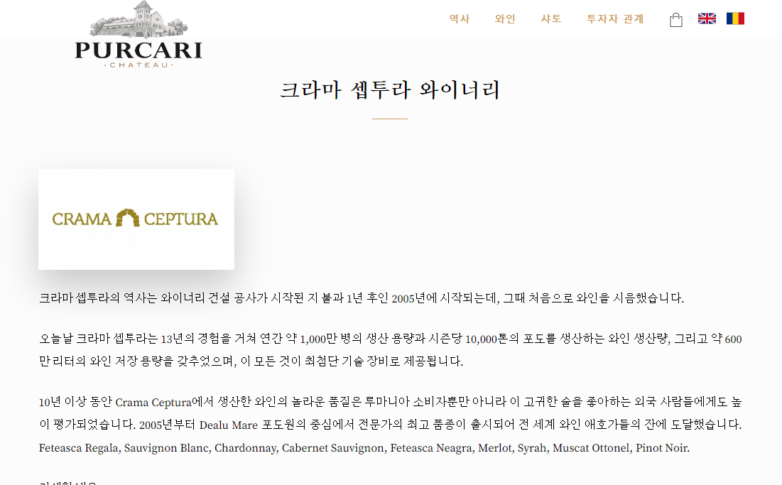 잘 찾아보니 Crama Ceptura Winery라는 루마니아 와이너리에서