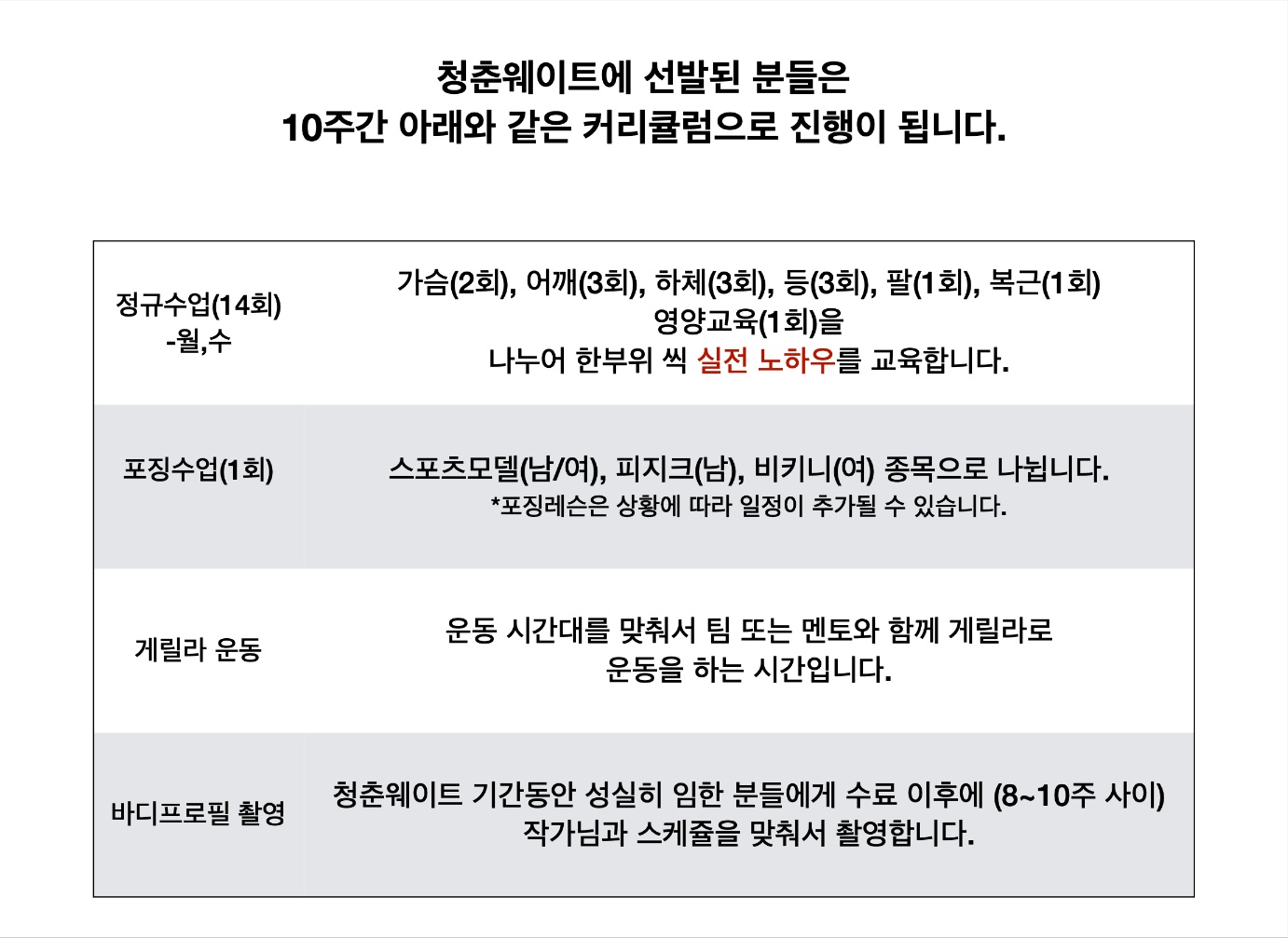 기수별로 지원자를 모집한다고 하니 다이어트나 모델, 보디빌딩이나 대회를 준비하시는 분들이라면