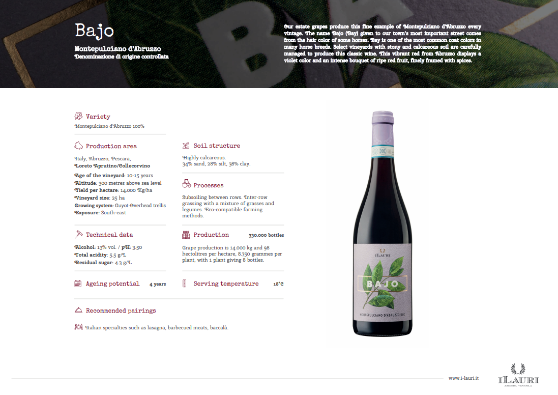 바조 몬테풀치아노 2022 : Bajo Montepulciano d'Abruzzo 2022