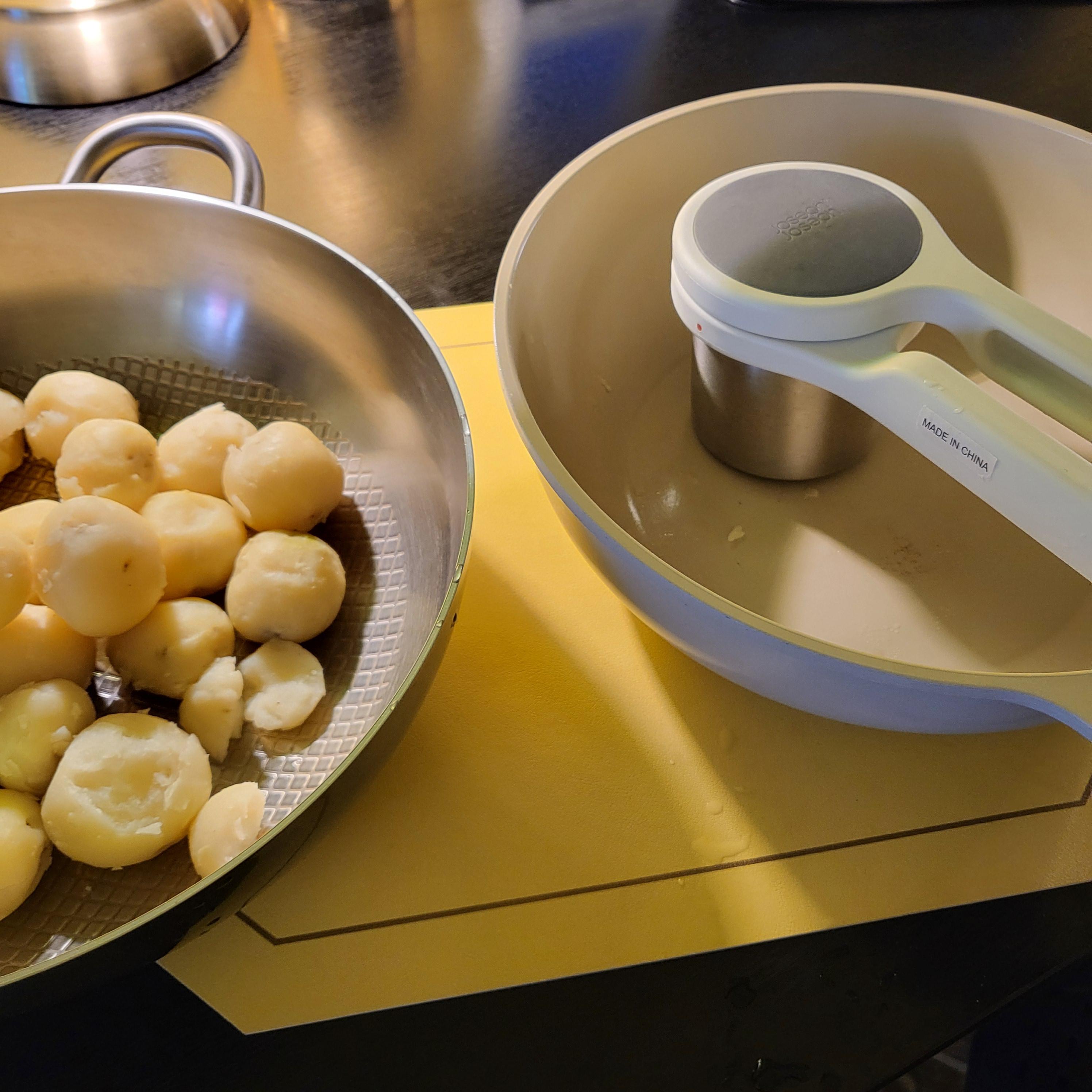 ① 감자 찌기 → 으깨기