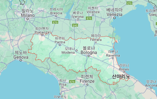 파나로(Panaro)와 세키아(Secchia) 사이의 모데나(Modena) 북쪽으로 뻗어 있는 것.