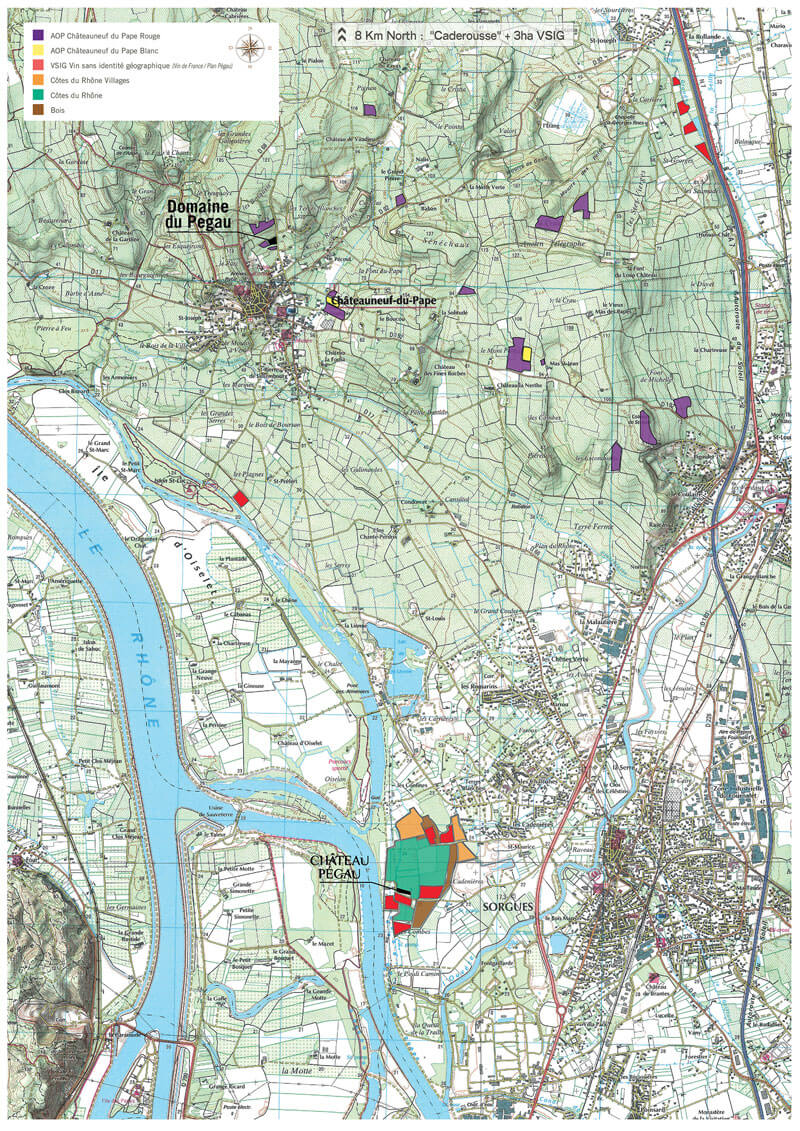 2012년 1월 Domaine du Pegau는 Chateuneuf du Pape에서 남쪽으로 6km 떨어진 곳에 위치한 41ha의 포도밭을 구입했습니다.