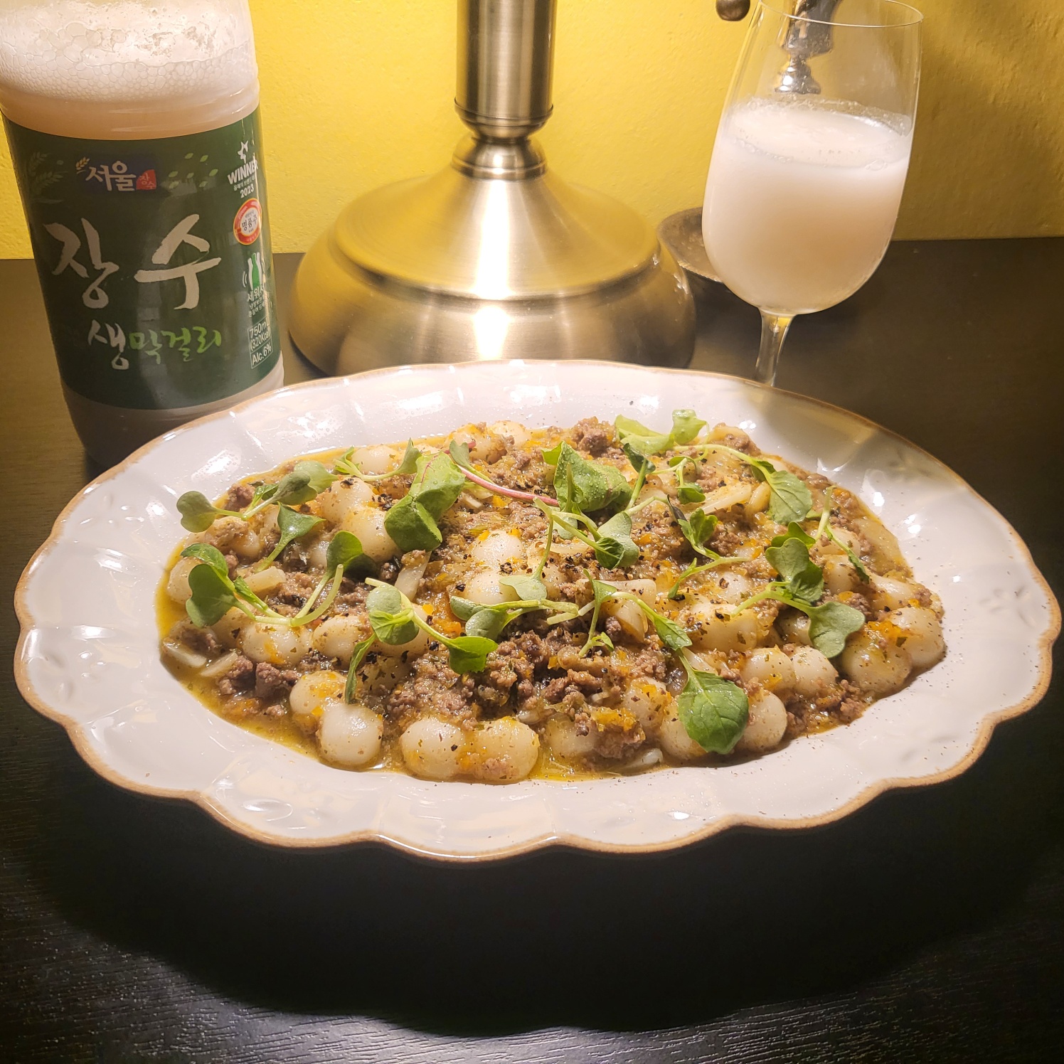 사실 화이트 라구 소스와 비슷한 방식에 간장을 더해서 만든 방식입니다